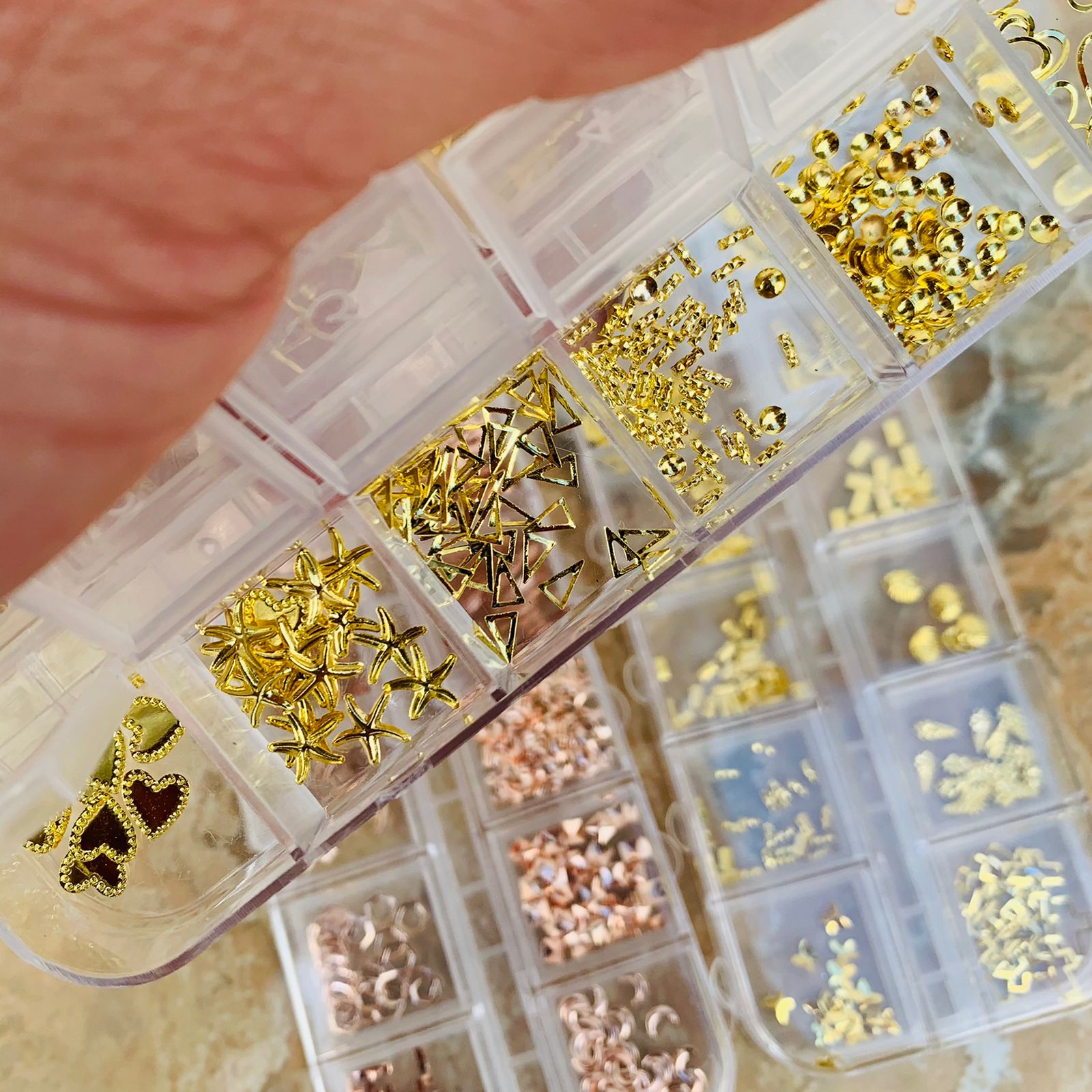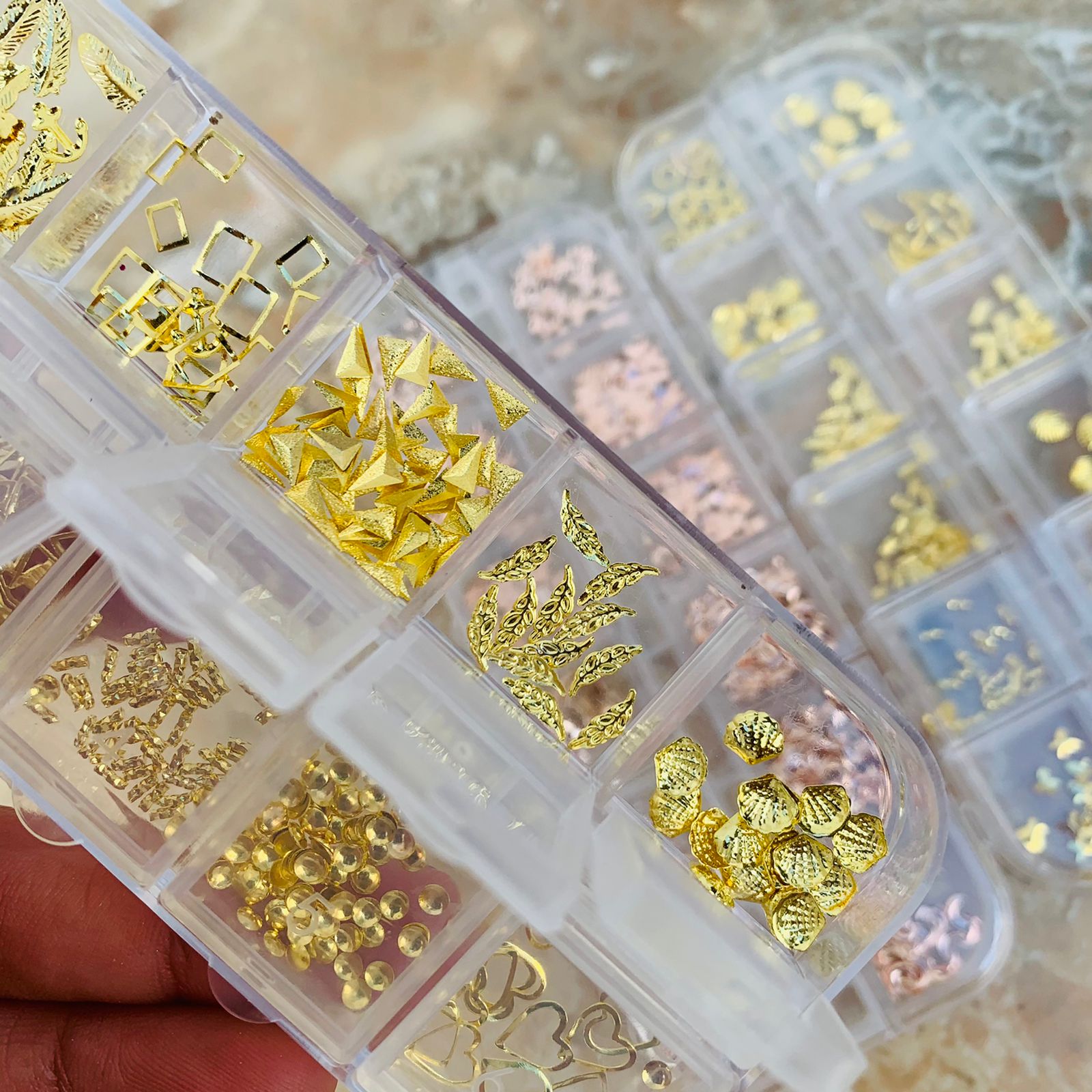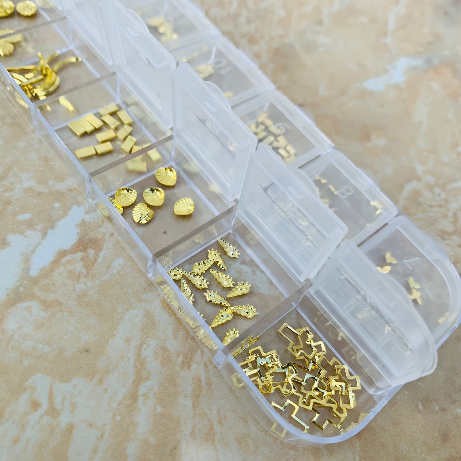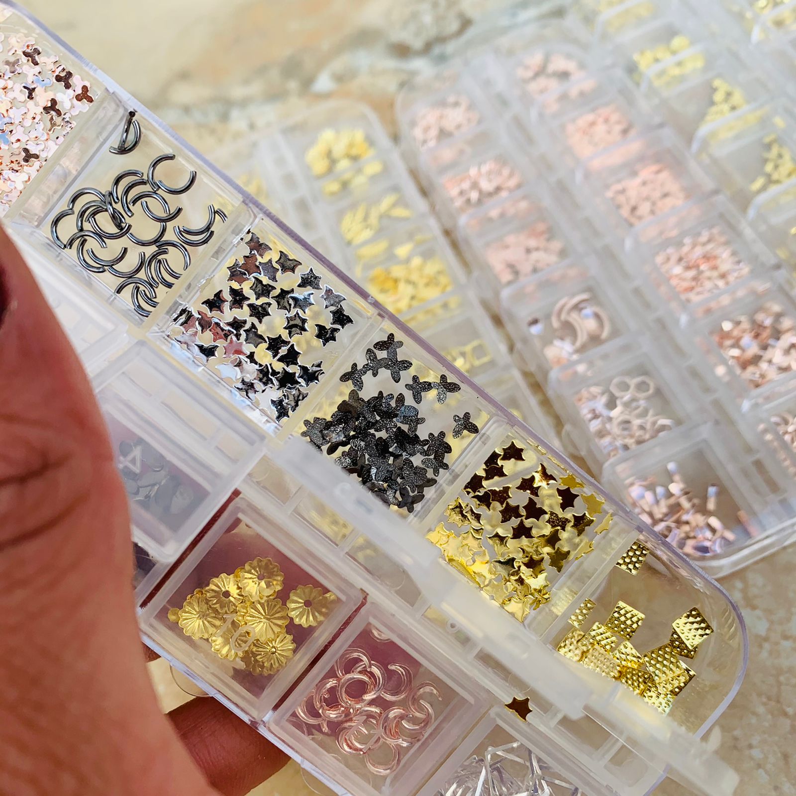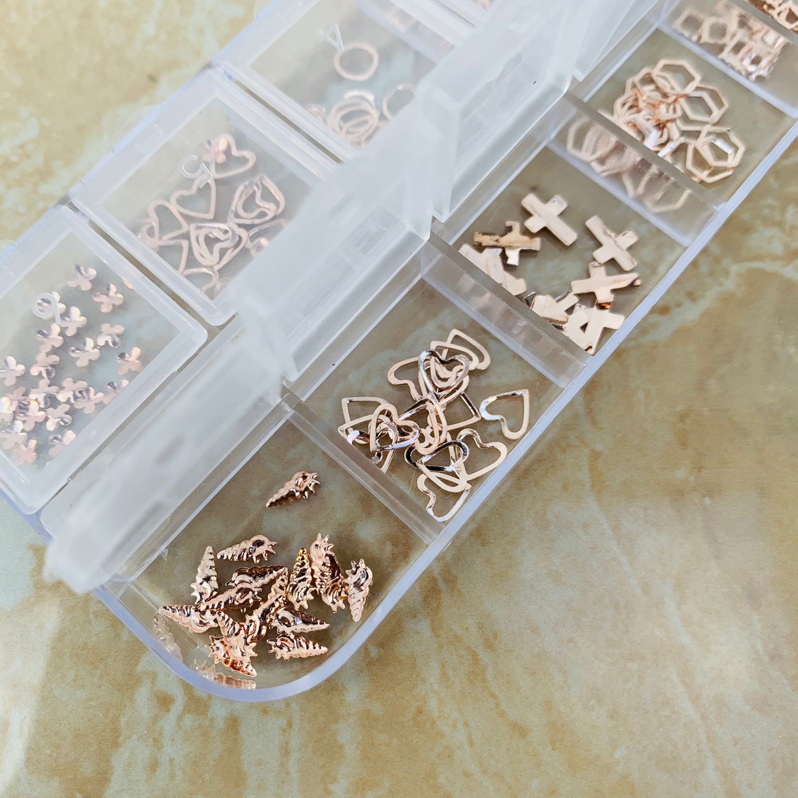 DOCENA DE DECORACION PARA UÑAS, DIFERENRES FIGURAS (paq, transparente)$144